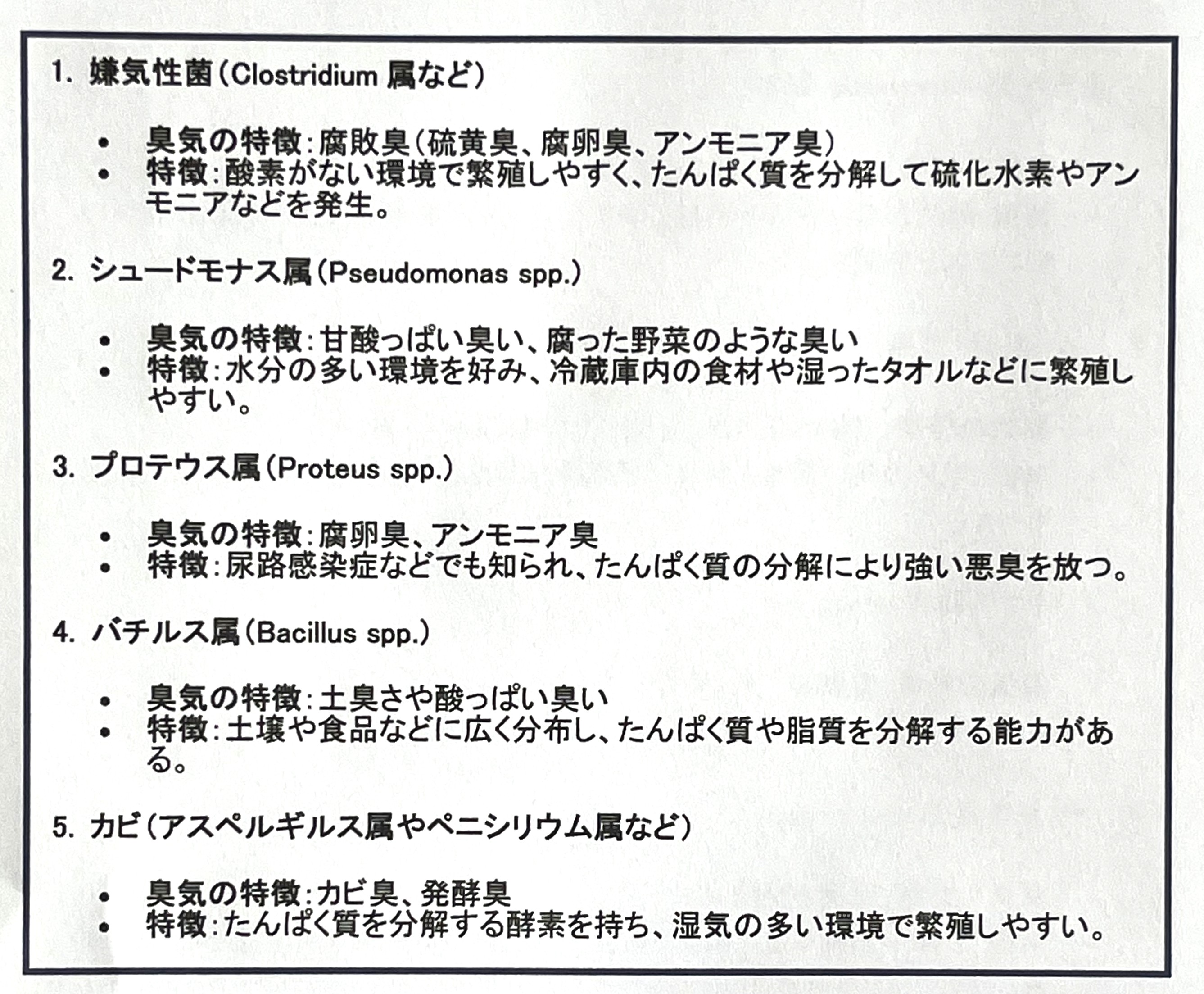 逆に言うと、これらを除去(殺菌)するとタンパク質は分解されず、従って臭気ガスも発生しません。このお得意様の「臭気がごく短時間で解決した」というご感想はこの菌やカビの除去機能によるものだとわかりますね。